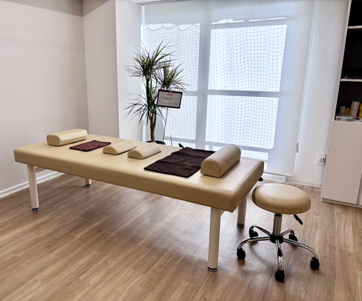 動きやすく滑りにくい材質の服装が望ましいです。当院でも施療着をご用意しております。 -